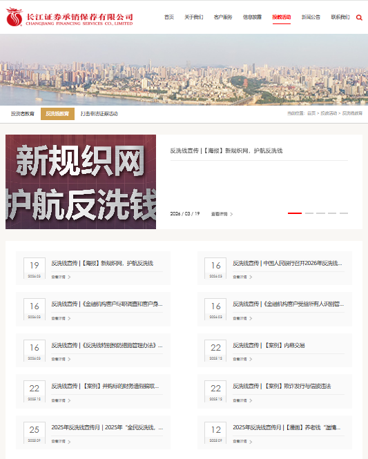 2026年一季度,长江证券承销保荐有限公司(以下简称“公司”)持续深化反洗钱宣传工作,聚焦新规落地与国际评估背景下的监管要求,推动反洗钱工作由合规导向,向风险治理导向升级,切实履行金融机构反洗钱义务,筑牢金融安全防线。